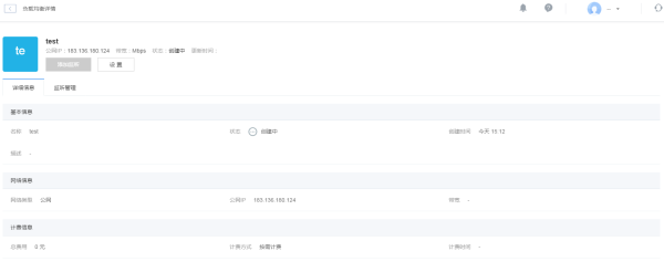 填完基本的创建信息后,点击「立即创建」按钮,跳转到「负载均衡详情」页面,如下图所示: