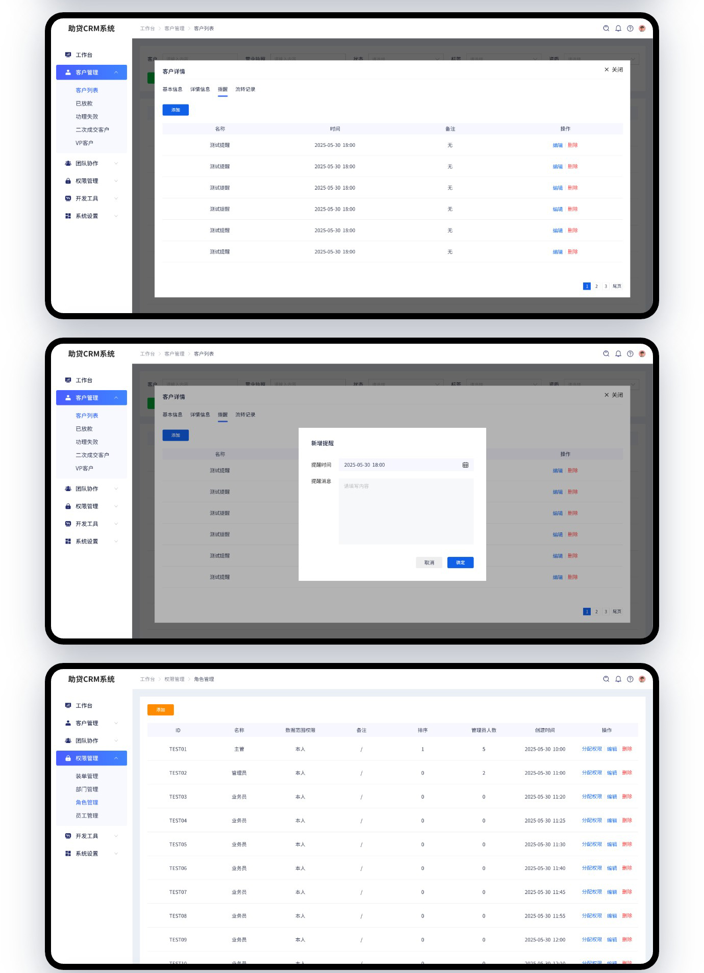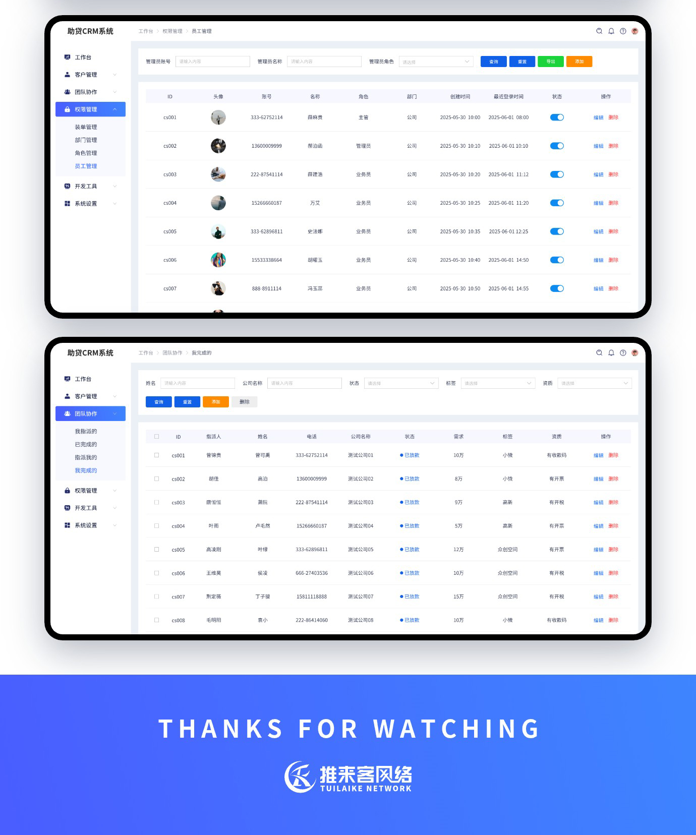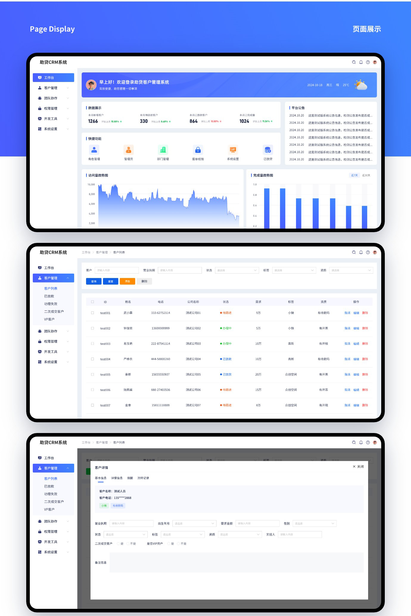 这是我们帮河南一家客户开发的助贷CRM管理系统,客户本来是想找成品部署的,但是找了一圈都没有合适的,因为功能需求不是常规的,必须要根据他们自身逻辑定制开发。但是问了不下10家,都是在1.5万以上,我们是报价最便宜的。但是可会又担心价格便宜了做不好,所以双方确定预留50%的尾款,做完了满意在单独发红包,不满意也没什么损失。