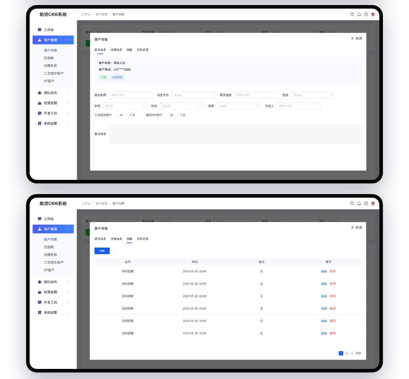 这是我们给河南一家助贷公司开发的CRM管理系统,功能也确实不复杂,定制开发也才几千块钱,客户之前使用的是传统的EXCL记录信息,但是随着数据网增加,之前的方式也不好管理了,现在业务渠道扩展有第三方API提供数据过来,所以也必须开发一套自己的系统来接收数据,那么接收了数据后又会涉及到数据的管理,干脆就把数据管理这一次一起开发了。