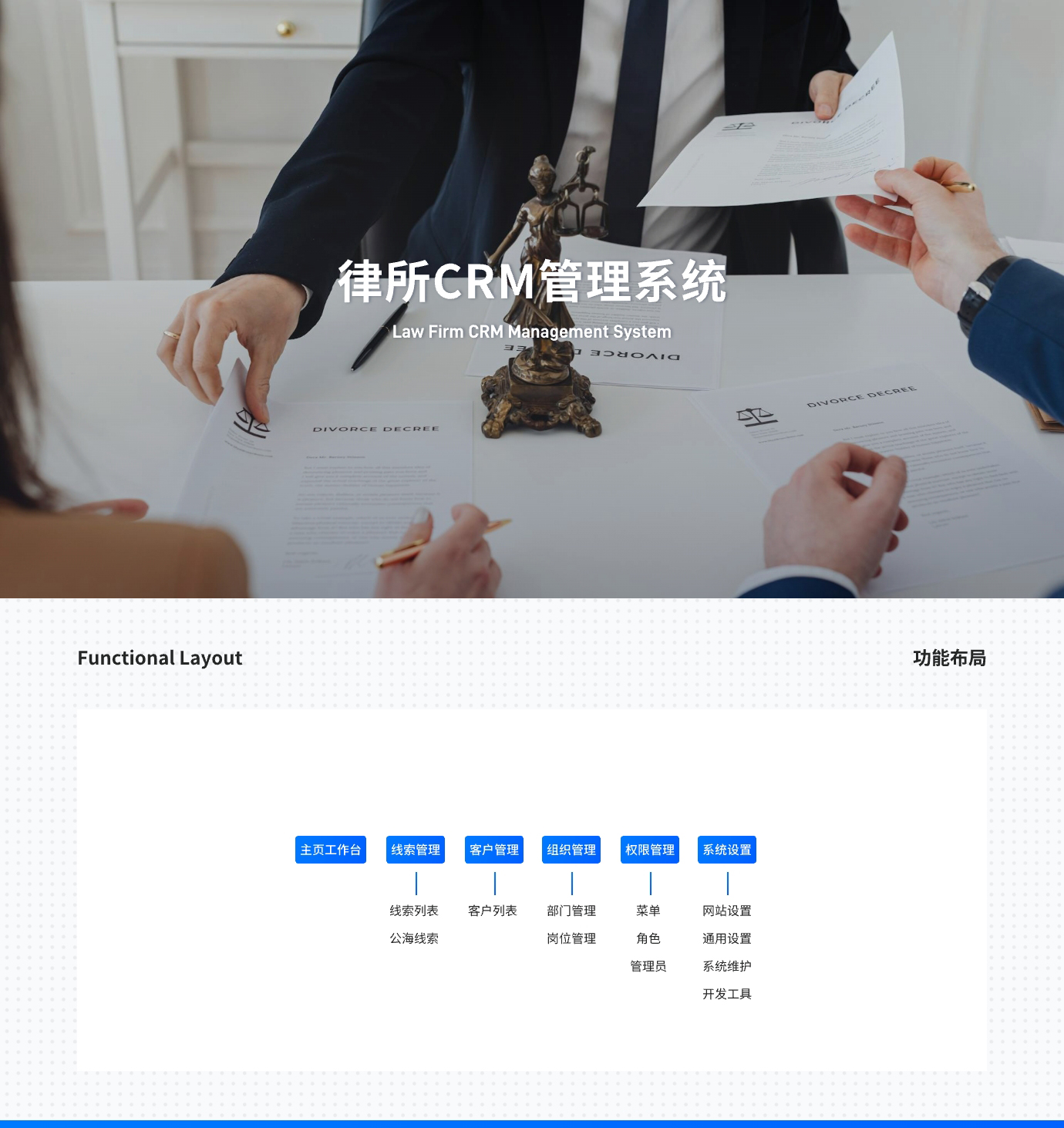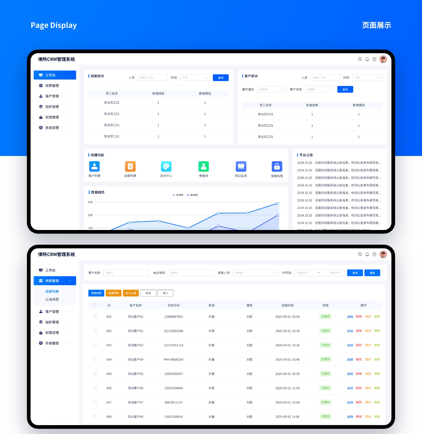 这是我们给成都一家律所开发的一套内部客户管理系统,主要功能就是潜在客户管理合已签约客户的管理。能对销售有量化的数据,对已签约的客户数据进行详细的记录,方便后期对客户的二次开发和跟进。