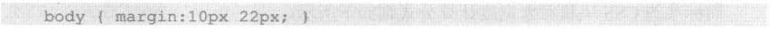 为margin属性设置3个属性值时,第一个属性值定义网页对象顶部的边框,第二个属性值定义网页对象的左右边框,第三个属性值定义网页底部边框对象,代码如下。