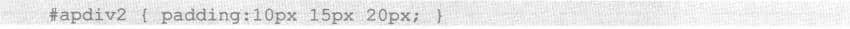 使用没有复合属性的padding属性也可以为网页对象的4个边设置不同的padding值。方法是为padding属性设置多个属性值。当为padding属性设置两个属性值时,第一个属性值定义了网页对象顶部和底部的padding,而第二个属性值定义了网页对象的左侧和右侧。 Side padding,其代码如下所示。