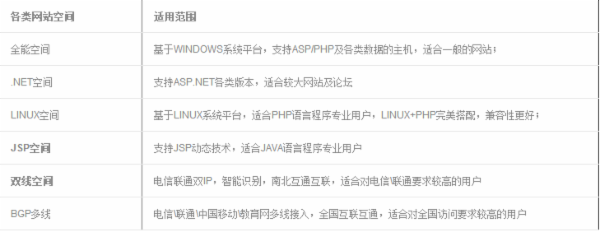 1、 根据网站脚本程序选择功能匹配的空间(详看:各类的网站空间及适用范围)