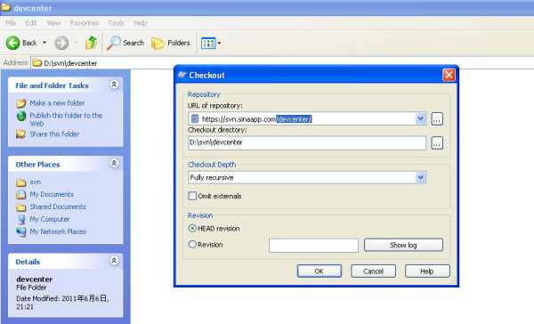 在弹出页面中填写仓库路径即可,这里是:https://svn.sinacloud.com/devcenter/,其它默认参数即可,如图: