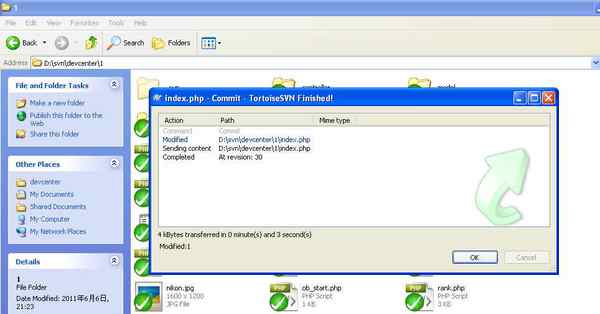 当您看到如下图所示,表明刚才的修改已经成功提交,并且前该devcenter项目的SVN版本号加1,变成30.
