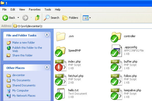 如果一切顺利,devcenter应用所有版本代码将会全部出现在刚刚创建的devcenter文件夹下,如图: