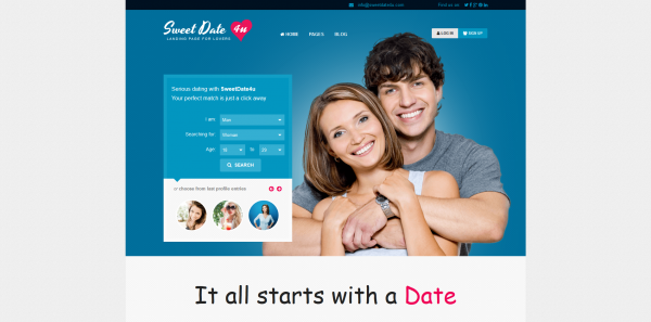 SweetDate是个相亲网站,视觉上强调择偶需求表单,让用户快速提交、进入体验。
