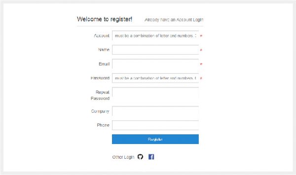 案例一:蝉知注册界面大家可以实际操作下,注册界面比较简洁,标签都采用居左标签的设计方式。是个比较不错的表单,但是个人觉得公司/组织那一项可以省略,毕竟不是必填项。