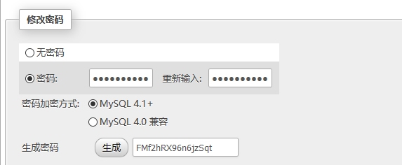 这里我们可以生成一个复杂的密码,或者我们自己设置一个,然后执行。其实这个时候,我们打开面板首页就可以看到错误了,因为我们还有一个配置文件没有修改。