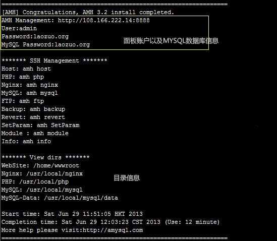 回车后,需要我们输入AMH管理面板的登陆密码,继续回车后就是自动安装。