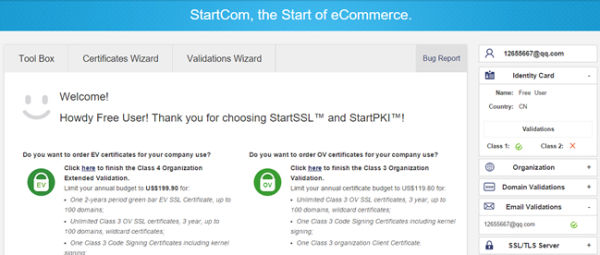 第三、申请免费StartSSL证书 StartSSL商家也不是完全提供免费SSL证书的,也有提供付费证书,毕竟人家也是要维系收支的,如果以后我们有钱了,也去购买人家的付费SSL使用。