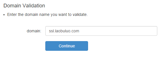 这里小编仅仅是为了测试StartSSL免费SSL证书的申请过程,也没有准备用到实际的网站中,所以暂且用laobuluo.com其中一个二级域名作为申请证书测试。