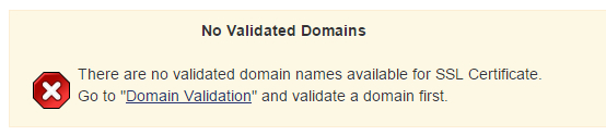 我们选择使用到网站中肯定需要对需要用的域名进行验证,要不就乱套了。看到上图所示点击"Domain Validation"进行域名验证。