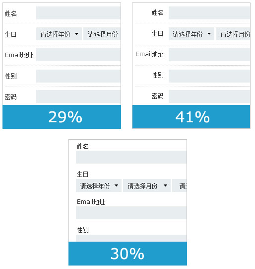 但是现在很多网站都在文本框中对文本框填写方式做其他暗提示,这个时候必填项暗提示就相对会被限制使用的范围了。作为必填项暗提示标志,还有两个致命的缺陷就是,当我填写完成时,我并不了解哪些是必填项哪些为非必填项,还有就是对于radiobox、checkbox、下拉框的必填来说也没有很好的解决方案。因此,在使用必填项暗提示时,在表单形式为文本框,并且文本框内无其他暗提示语句的时候也可以使用。