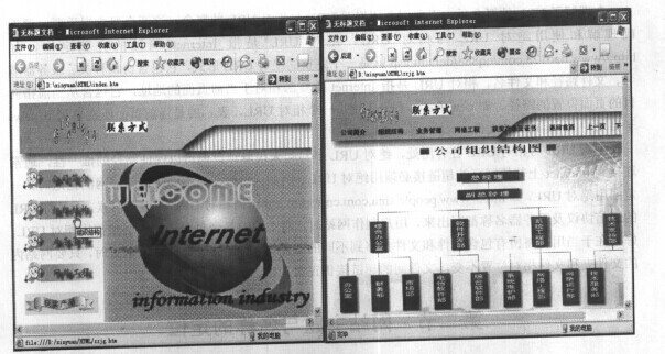 (3) 当点击带有超链接的文字或图片时,可以打开链接的网页,如图1.1.1所示。这个例子是图片链接。单击“组织结构”图片时,将打开右侧显示的链接“组织结构”页面。