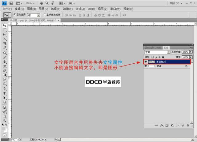 文字图层合并后效果 文字图层合并后将失去文字属性,不能直接编辑文字,即是图形图层了